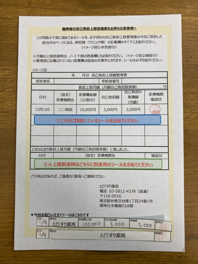 「配送だと、医療費助成の管理票はどうなるの?」というご不安もしっかり解消します。 お薬と一緒に、薬局で計算・記入を済ませた「専用シール」を同封してお届けします。 届いたら、それをご自身の管理票にペタッと貼るだけで手続きは完了。ご自身での複雑な計算や記入は一切必要ありません。